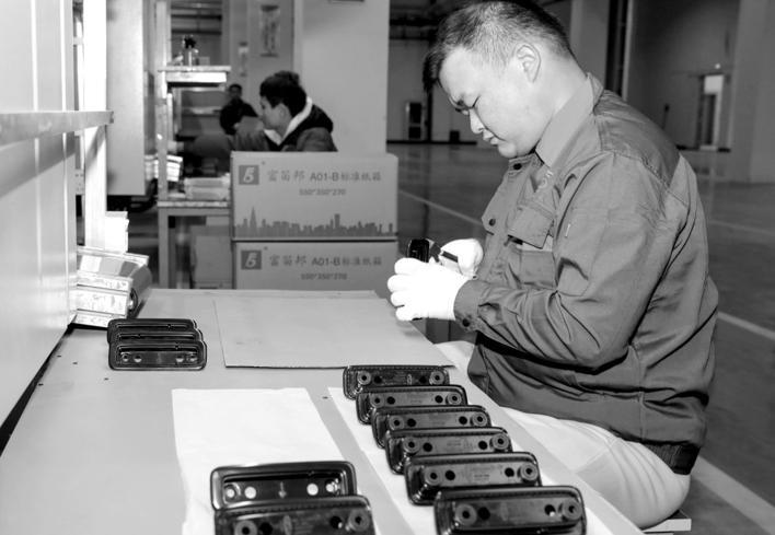 1月5日,义安经开区安徽瀚铭科技有限公司生产车间内,工人正进行产品加工。