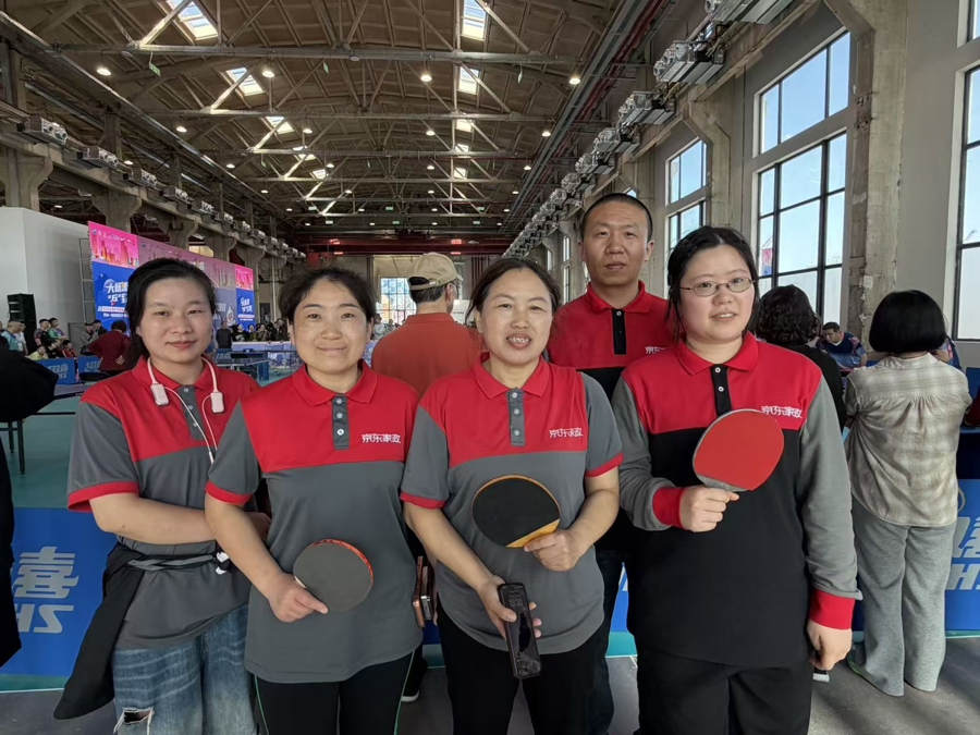 京东家政代表队领队张海波同时也是带教师傅、一线服务人员,她在接受采访时笑着说:“我们员工凭着自己的爱好就来报名了。你看我们,有的刚下完班,拎着工作包、穿着工作服就赶过来了,也没来得及换衣服。”说起参赛目标,她语气朴实又真诚:“我们没想过要拿多好的成绩,就是希望能把健康的理念带给大家。我们京东家政本来就是做家电清洗、日常保洁的,天天给千家万户打造干净健康的家;我们自己打乒乓球强身健体,跟客户聊天也能拉近距离、缓解心情,也算兼顾了身心健康。要是能进前八,那当然最好啦。”